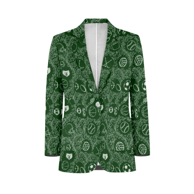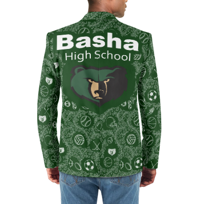 This is a fun Tuxedo Suit Blazer Coat made custom made with the Basha High School on the back and in the pattern of the coat along with all the sports played to give the max school spirit with style. Great for prom or just to wear at any school events or sports games to show your school spirit.