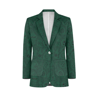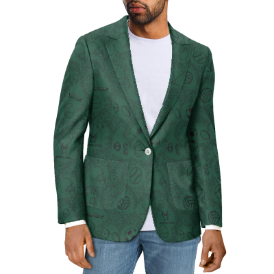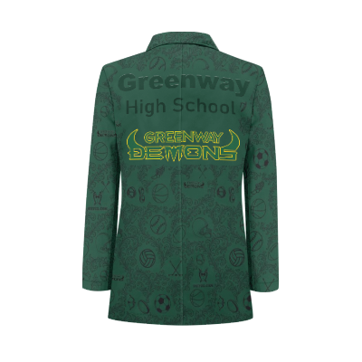 This is a fun Tuxedo Suit Blazer Coat made custom made with the Greenway High School on the back and in the pattern of the coat along with all the sports played to give the max school spirit with style. Great for prom or just to wear at any school events or sports games to show your school spirit.