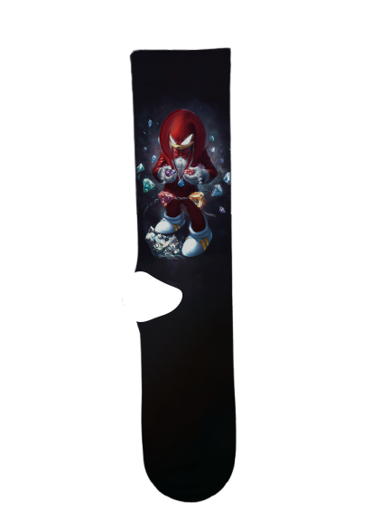 Knuckles Socks by Suitux, Sonic’s strong, rival-turned-friend, the last of the echidna tribe, and the dedicated guardian of the powerful Master Emerald on Angel Island; he’s known for his superhuman strength, ability to glide and burrow with his spiked knuckles, and a serious but sometimes gullible personality, often tricked by Dr. Eggman initially but later becoming a faithful ally.