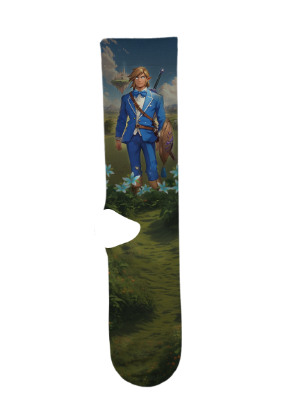 Link 5 Socks by Suitux, the courageous, green-clad protagonist of The Legend of Zelda series, a heroic soul reincarnated across time to protect Hyrule, Princess Zelda, and the Triforce from evil forces, primarily Ganon, known for his bravery, silence, sword skills, and role as the “Hero of Hyrule”.