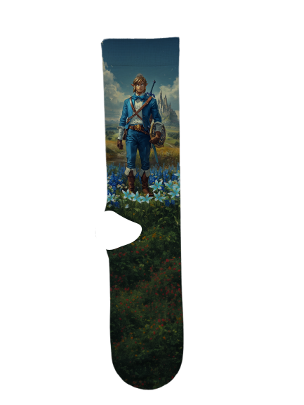 Link 6 Socks by Suitux, the courageous, green-clad protagonist of The Legend of Zelda series, a heroic soul reincarnated across time to protect Hyrule, Princess Zelda, and the Triforce from evil forces, primarily Ganon, known for his bravery, silence, sword skills, and role as the “Hero of Hyrule”.