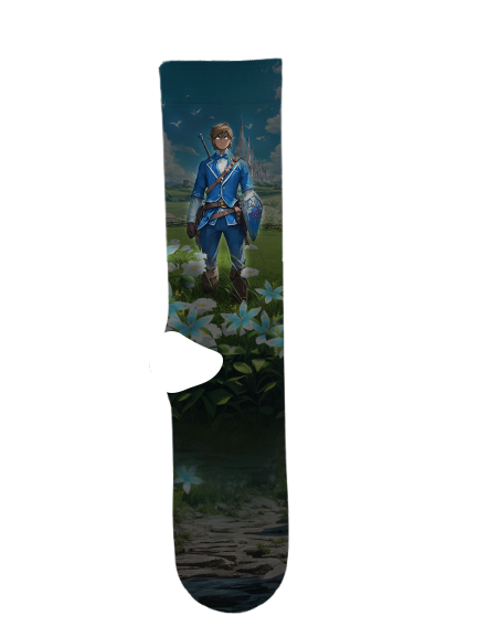 Link 7 Socks by Suitux, the courageous, green-clad protagonist of The Legend of Zelda series, a heroic soul reincarnated across time to protect Hyrule, Princess Zelda, and the Triforce from evil forces, primarily Ganon, known for his bravery, silence, sword skills, and role as the “Hero of Hyrule”.