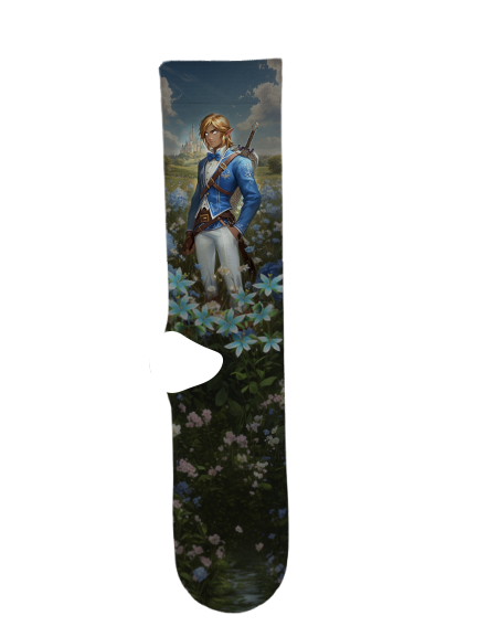 Link 8 Socks by Suitux, the courageous, green-clad protagonist of The Legend of Zelda series, a heroic soul reincarnated across time to protect Hyrule, Princess Zelda, and the Triforce from evil forces, primarily Ganon, known for his bravery, silence, sword skills, and role as the “Hero of Hyrule”.