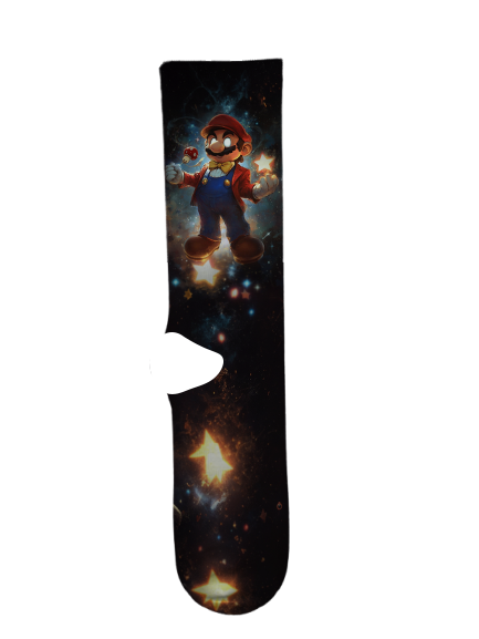 Super Mario 1 Socks by Suitux, the heroic plumber Mario (and sometimes his brother Luigi) adventuring through the magical Mushroom Kingdom to rescue Princess Peach from the evil King Bowser.